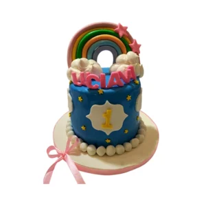 Torta de cumpleaños con arcoíris y nubes