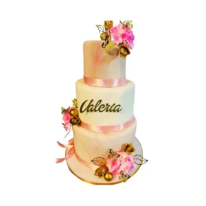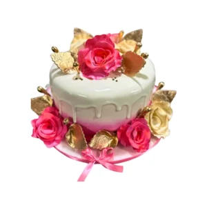 Torta de cumpleaños rosa y dorado elegante