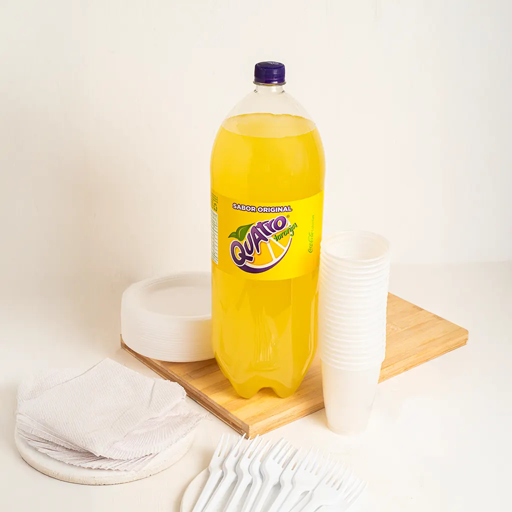Todo lo que necesitas para celebrar sin complicaciones. Incluye 20 vasos, 20 platos, cubiertos, servilletas y una gaseosa de 3 litros. ¡Ideal para reuniones, cumpleaños y momentos llenos de sabor!